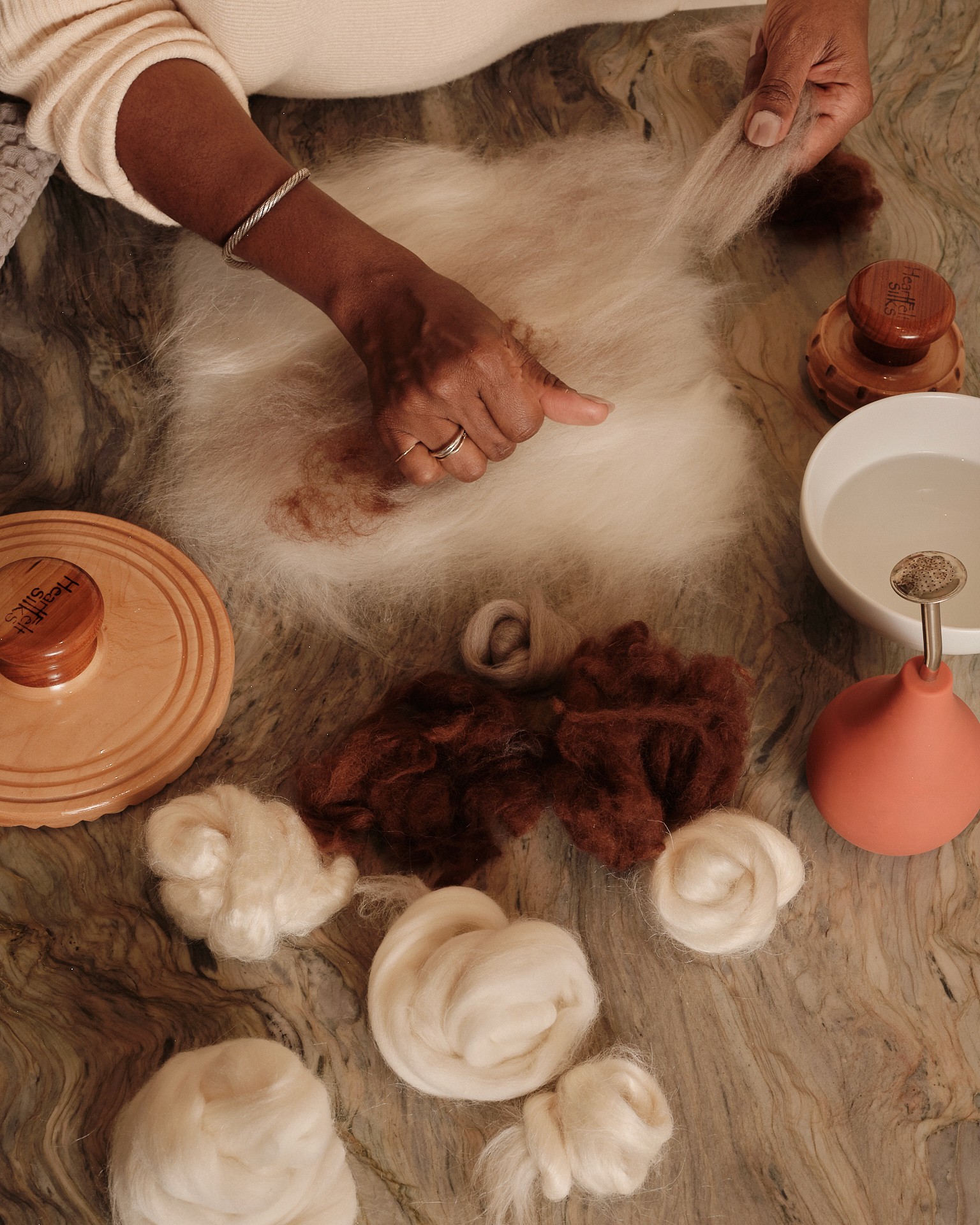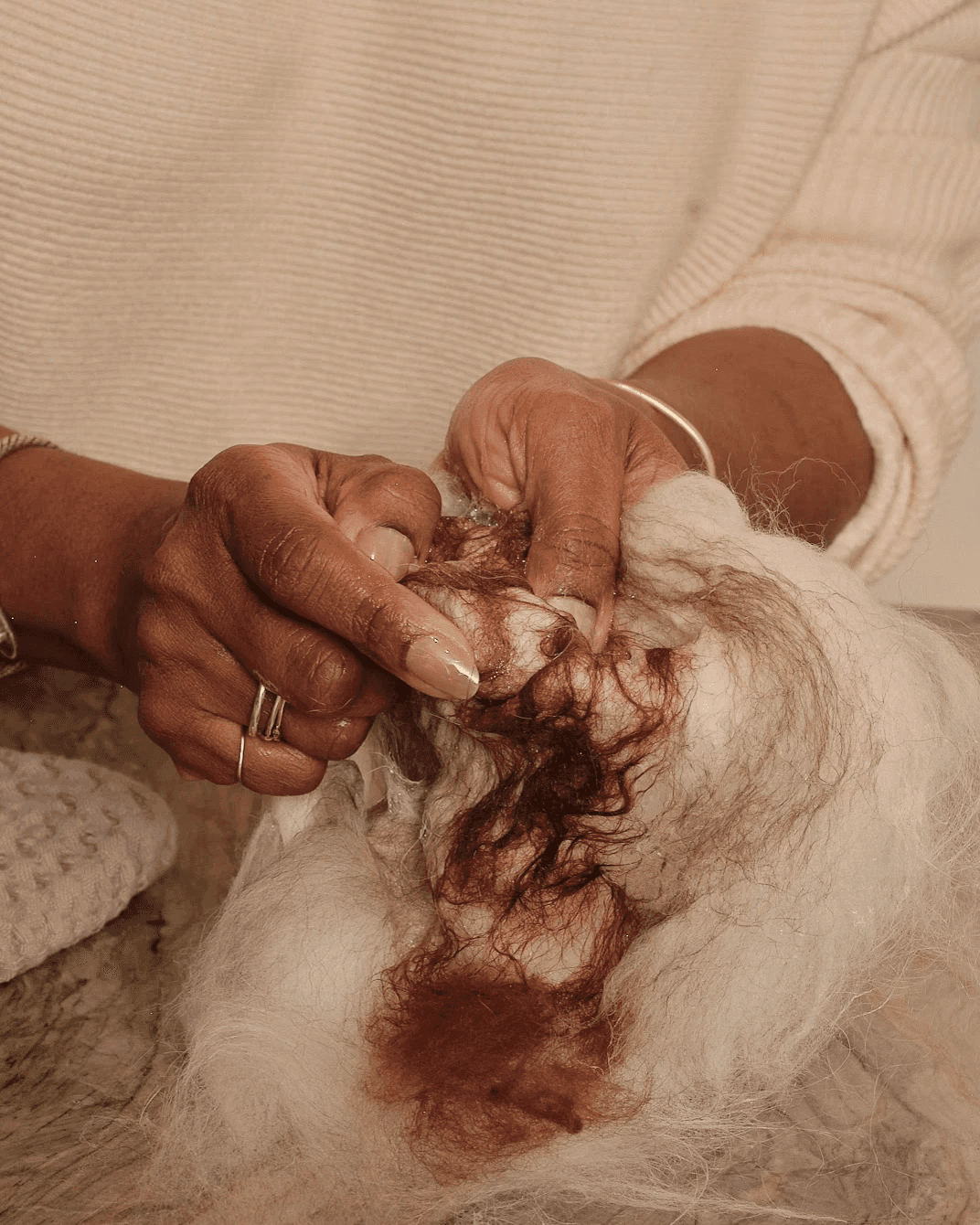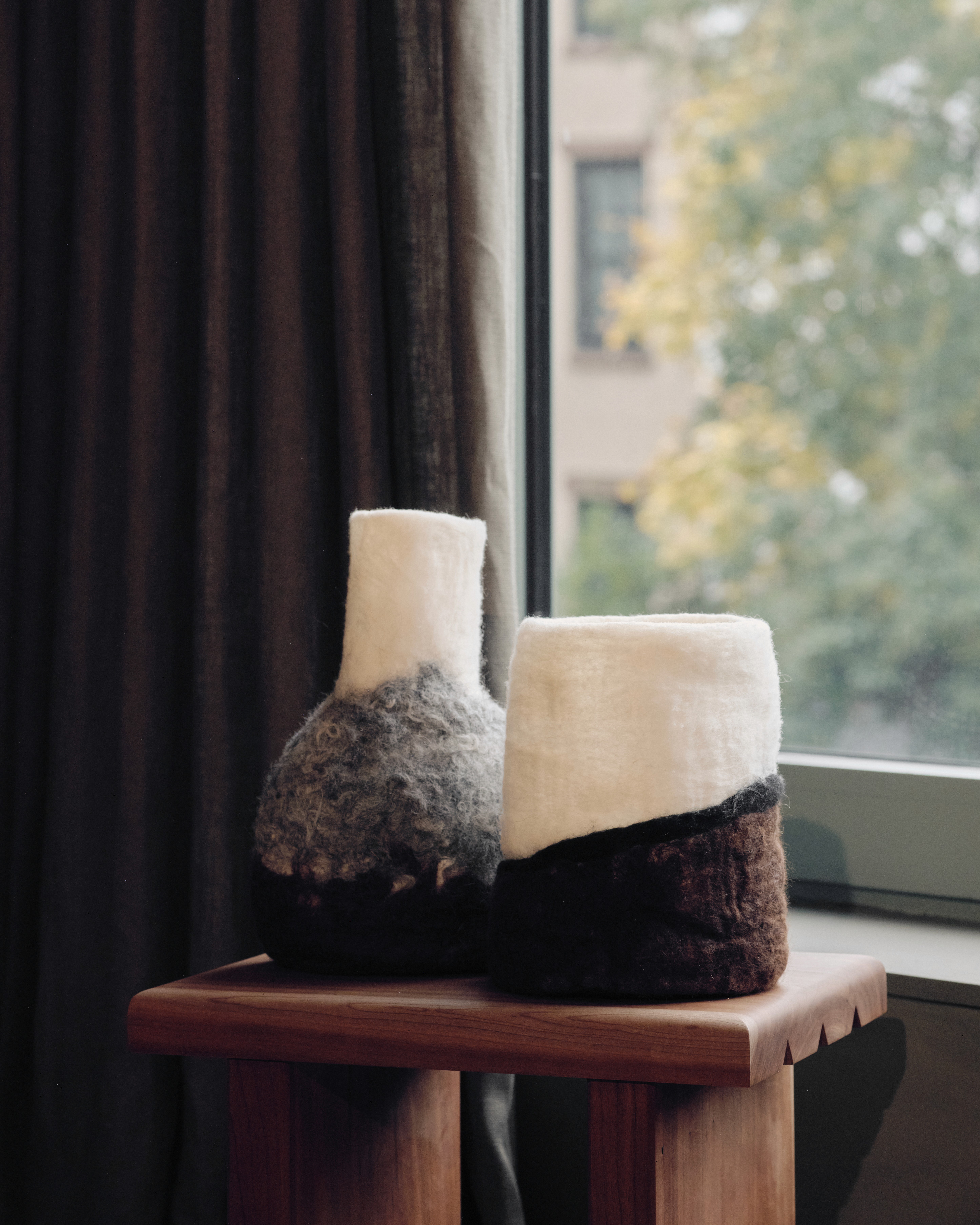 Every Suri & Caya piece begins with natural wool, chosen for its tactility, honesty, and ability to hold soft, sculptural form.