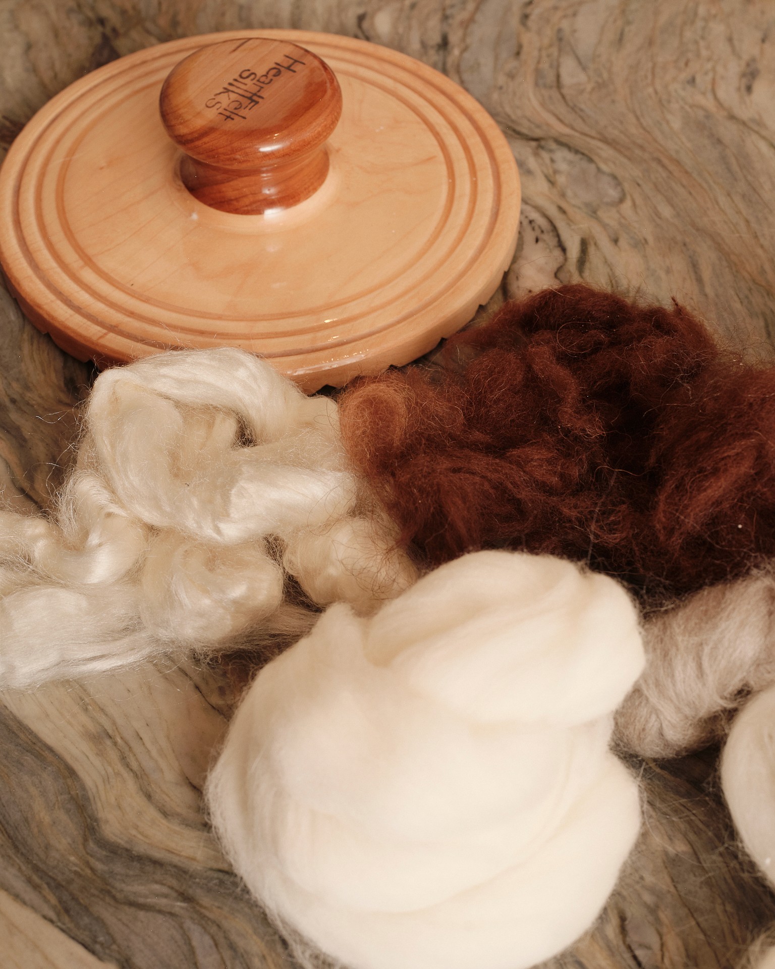 We work with wool, alpaca, yak, camel, and silk–renewable fibers known for their organic character and softness.