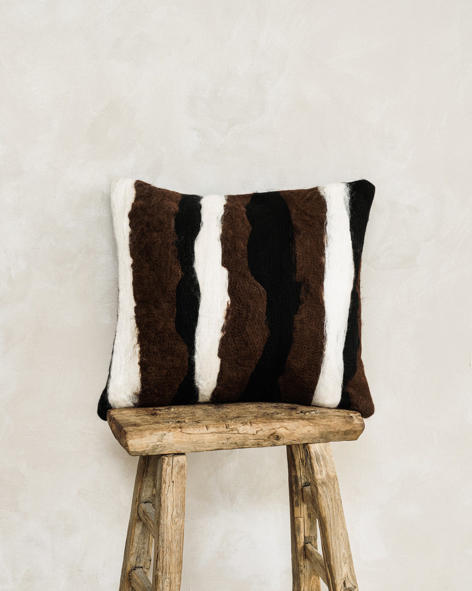 Elevate your space with the timeless artistry of felt. This handcrafted pillow brings warmth, texture, and understated luxury to any room. Each pillow is made using the traditional art of felting, blending organic fibers into a unique design that celebrates natural beauty.