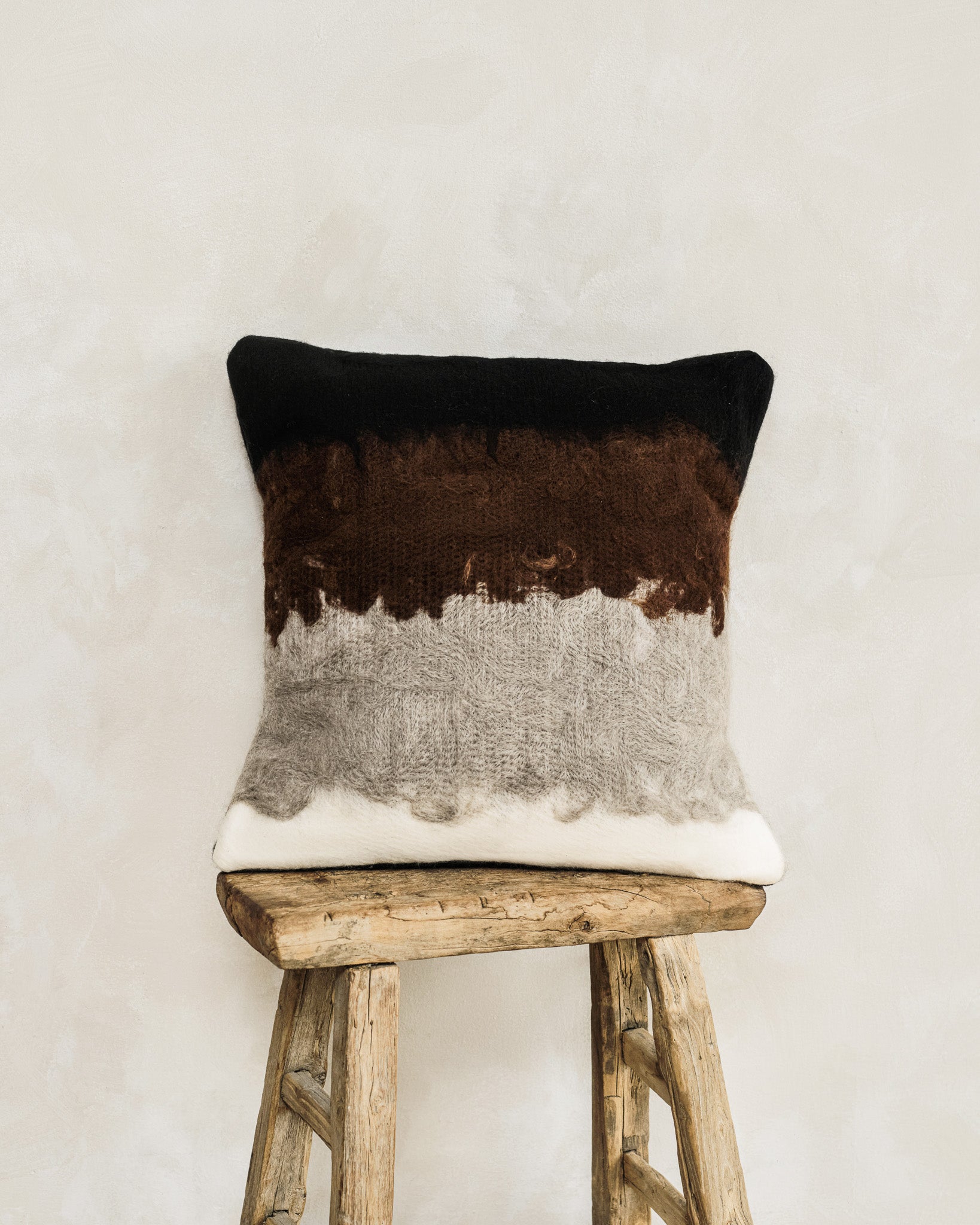 Layered in warm, organic hues, the Terra Vita Pillow celebrates the vitality of the living earth. Hand-felted textures bring movement and warmth into any interior.