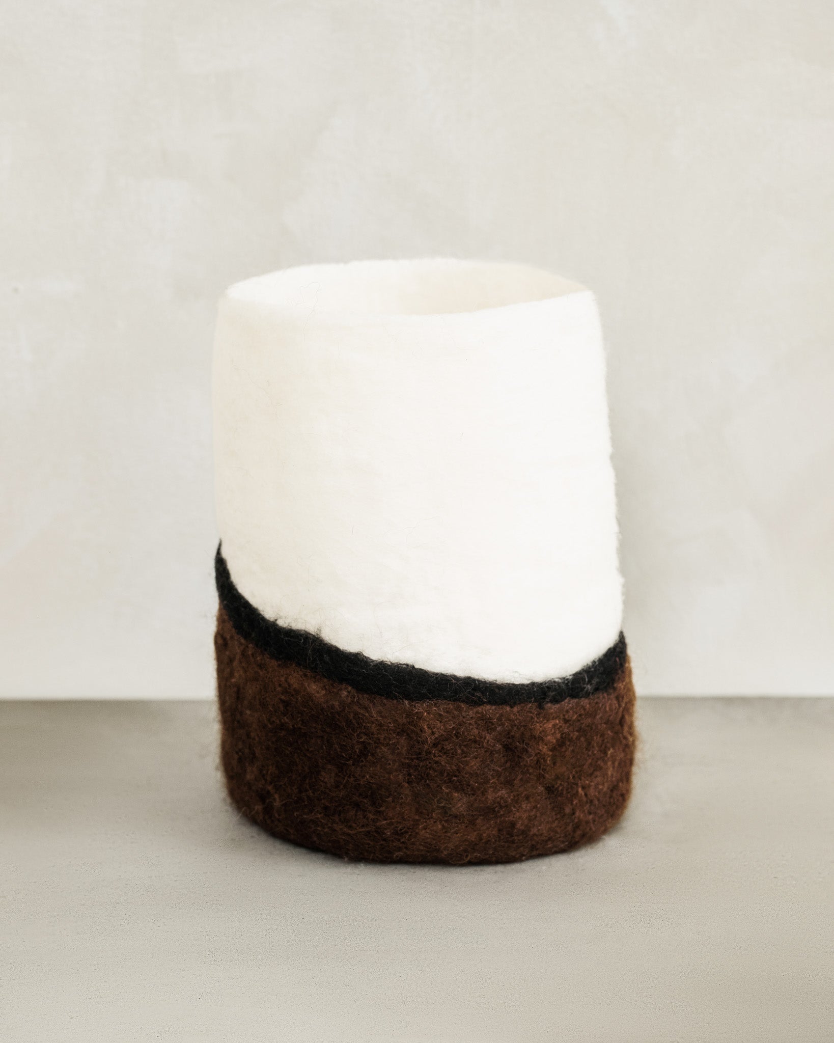 Shaped by hand using the traditional art of felting, each vessel carries subtle variations in texture and color, making it uniquely its own. An understated, organic piece that adds warmth and grounded elegance to any space.